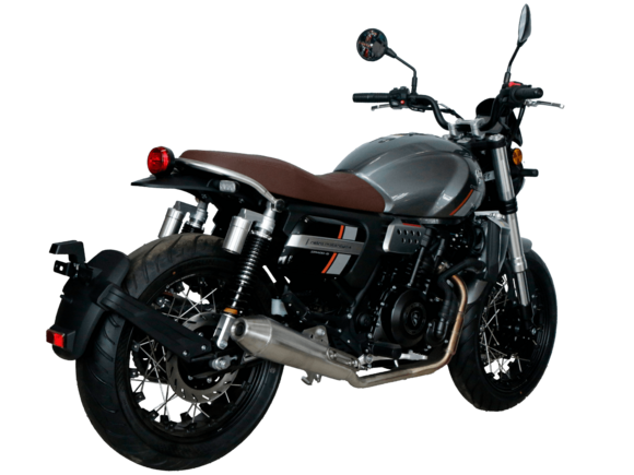 CYCLONE RE401 (SR400-B) 2024 – классик, в котором подчёркнутая простота объединяется с современными технологиями. Данная модель является более продвинутой версией модели RE3 (SR-400) – мотоцикл обладает более современным дизайном, снабжён стильными металлическими накладками на радиатор, а также топливным баком, объём которого увеличен до 20 литров.Двухцилиндровый четырёхтактный двигатель объёмом 401 см3 выдаёт 43 л.с. на 9500 об/мин. Инжекторный впрыск топлива с инжектором BOSCH увеличивает топливную экономичность, а также позволяет добиться высокой приёмистости и неприхотливости агрегата. Жидкостная система охлаждения не допустит перегрева двигателя даже при самом агрессивном вождении. На мотоцикл установлена 6-ступенчатая механическая коробка передач.Максимальная скорость мотоцикла составляет 150 км/ч.RE401 оснащён классическими спицованными колёсами диаметром 17 дюймов. Колёса обуты в бескамерные покрышки TIMSUN. С неровностями дороги эффективно справляются телескопическая вилка перевёрнутого типа спереди и маятник с двумя амортизаторами сзади. Ход передней подвески составляет 130 мм, задней – 81 мм. Оба компонента подвески являются регулируемыми. Эффективное и безопасное замедление с любых скоростей обеспечивают гидравлические дисковые тормоза с ABS спереди и сзади.Клиренс мотоцикла составляет 170 мм. Объём топливного бака – 20 л. Снаряжённая масса – 186 кг.Из дополнительного оборудования можно выделить USB-порт и датчики давления в шинах.Мотоцикл сочетает в себе отличные технические характеристики, комфорт и надёжность, что позволяет вам ощутить настоящую свободу на любой дороге.