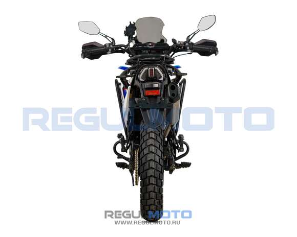 Regulmoto XADV — это современный туристический эндуро, сочетающий в себе комфорт для дальних поездок и отличные внедорожные качества. Модель создана для тех, кто хочет чувствовать себя уверенно как на трассе, так и на сложных грунтовых маршрутах.В основе мотоцикла — надёжный одноцилиндровый 4-тактный двигатель Hensim 174YMN объёмом 279,6 см³, развивающий мощность 28 л.с.. Балансировочный вал снижает вибрации, а система воздушно-масляного охлаждения обеспечивает стабильную работу даже при длительных нагрузках. Топливная система на карбюраторе NIBBI Racing PWK34 и зажигание CDI гарантируют точную подачу топлива и быстрый отклик на газ.Трансмиссия механическая, с 6-ступенчатой коробкой передач, запуск осуществляется удобным электростартером.Подвеска адаптирована для путешествий и лёгкого бездорожья: спереди установлена перевёрнутая телескопическая вилка длиной 940 мм, сзади — надёжный моноамортизатор. Такая комбинация делает езду устойчивой и комфортной на любом покрытии.За безопасность отвечают дисковые гидравлические тормоза: передний диск диаметром 220 мм с двухпоршневым суппортом и задний дисковый тормоз с двухпоршневым суппортом.Колёсная база 1345 мм, высота по седлу 860 мм и удобная эргономика делают XADV доступным для большинства райдеров. Внедорожные колёса размером 90/90-19 спереди и 130/90-17 сзади обеспечивают отличное сцепление как на асфальте, так и на грунтовых дорогах.Большой топливный бак объёмом 13,5 литров позволяет проходить длинные маршруты без частых остановок на заправку, а прочная конструкция выдерживает нагрузку до 150 кг. При этом собственный вес мотоцикла составляет всего 150 кг, что делает его лёгким в управлении.Габариты модели — 2010×930×1220 мм, что в сочетании с компактной рамой делает Regulmoto XADV удобным и манёвренным туристическим эндуро. Основные преимущества:Двигатель 280 см³ / 28 л.с. с балансировочным валомВоздушно-масляное охлаждение для надёжной работы в любых условиях6-ступенчатая механическая коробка передачСовременная подвеска (перевёрнутая вилка 940 мм и моноамортизатор)Дисковые гидравлические тормоза с двухпоршневыми суппортамиВместительный бак на 13,5 литровУдобная посадка: высота седла 860 мм, вес всего 150 кгRegulmoto XADV — это универсальный туристический эндуро для дальних поездок, путешествий и активного отдыха. Он сочетает в себе мощность, комфорт и проходимость, позволяя уверенно чувствовать себя как на шоссе, так и на пересечённой местности.