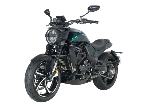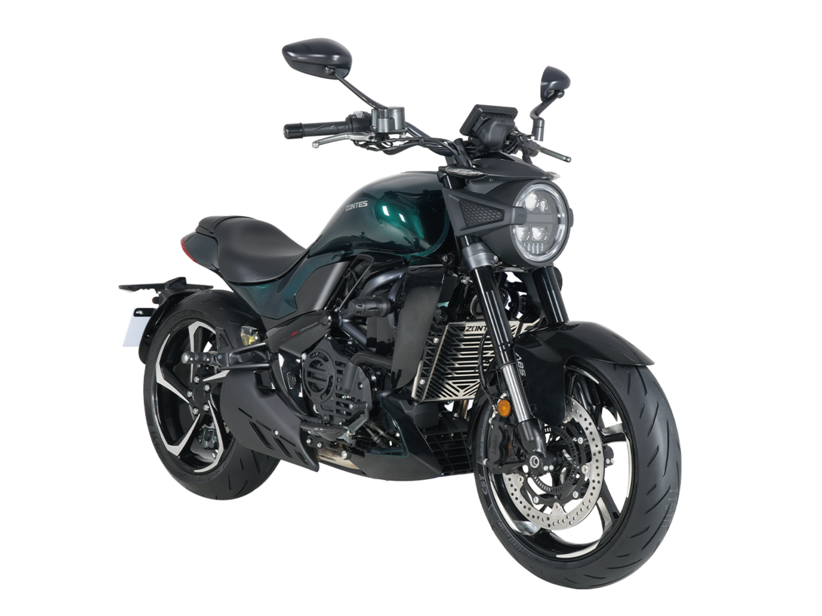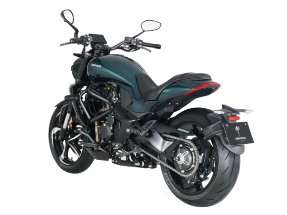 Мотоцикл ZONTES ZT350-S – лёгкий круизёр со стремительным и современным дизайном. Хорошо подходит как для повседневных поездок по городу, так и для покорения дальних маршрутов.Силовая установка представлена одноцилиндровым 4-тактным двигателем ZT184MP с 4 клапанами и 2 верхними распредвалами. Двигатель имеет объём 348 см³ и обеспечивает мощность в 39 л.с. Оснащён инжектором BOSCH и системой жидкостного охлаждения. Механическая коробка передач имеет 6 ступеней и схему 1-N-2-3-4-5-6. Запуск двигателя осуществляется с помощью бесключевого доступа.Ёмкость топливного бака 16 литров.Колёса представлены литыми алюминиевыми дисками диаметром 17 дюймов. На мотоцикл установлены датчики давления в шинах, показатели от которых выводятся на приборную панель. Для подвески спереди используется телескопическая вилка, сзади – моноамортизатор. Гидравлические дисковые тормоза произведены испанской компанией J.JUAN, входящей в холдинг BREMBO.Для освещения используется яркая LED-оптика, а приборная панель представлена цифровым дисплеем. Рычаги тормоза, сцепления и лапки КПП можно отрегулировать. Имеется 2 USB-порта.Габариты мотоцикла 2080х860х1150 мм. Колёсная база 1430 мм. Высота по седлу 750 мм. Вес 176 кг.