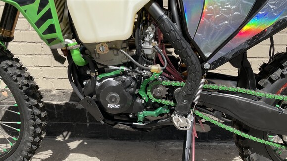 Комплектация Руль IGP twinwall 28мм алюминиевый, короткоходная ручка газа NIBBI, ручки IGP "неломайки", Алюминиевые фрезерованные траверсы CNC. Цепь 520. Алюминиевые подножки водителя и лапки КПП,Алюминиевая защита картера,защита тормозного диска,защита маятника,защита рук,боковая защита рамы,алюминиевая ведомая звезда CNC