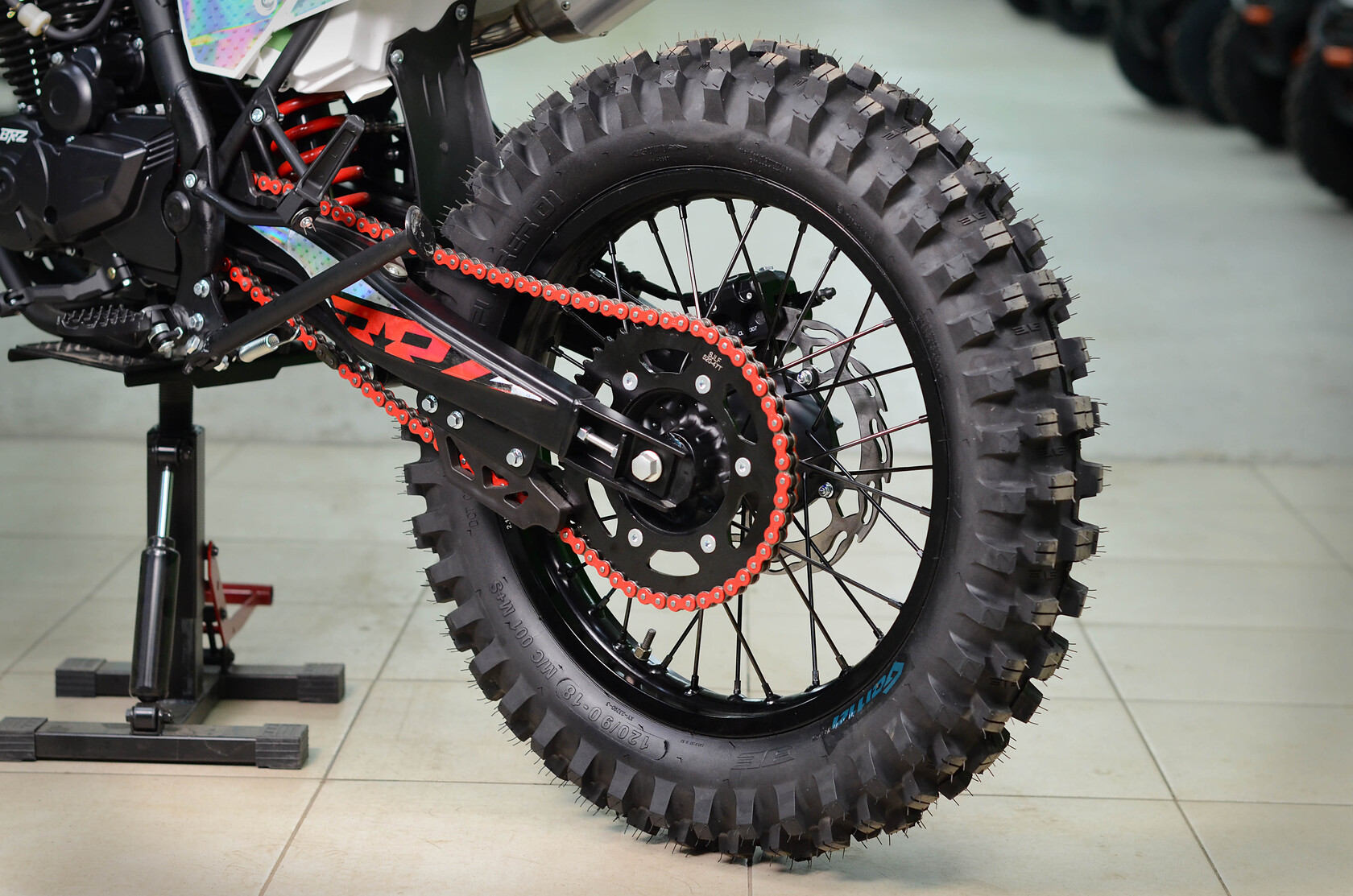 Навесное – Руль 28мм алюминиевый.Короткоходная ручка газа. Защита рук. Фрезированные откидные рычаги. Алюминивевые подножки водителя. Алюминиевая лапка КПП. Цепь 520 КМС. Подсос на руле.