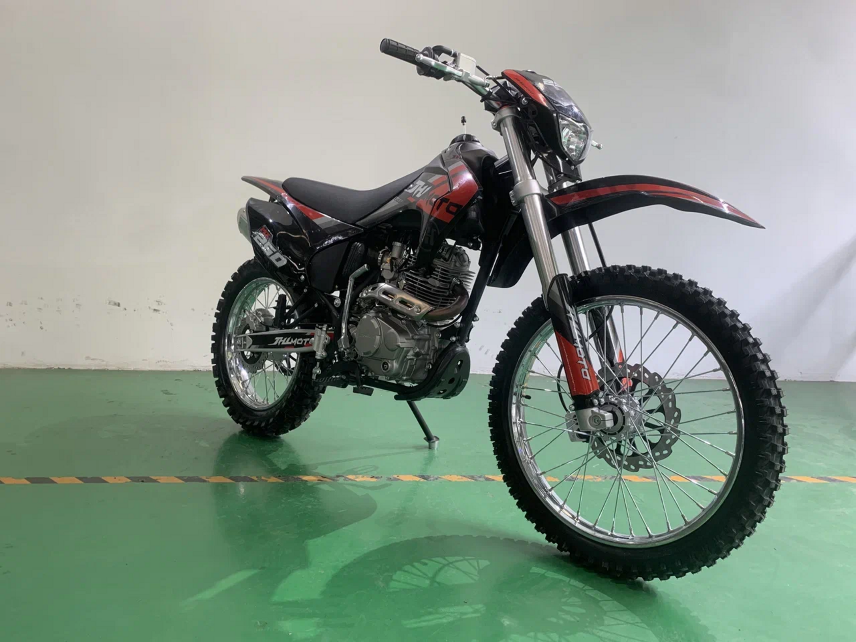 JHLMOTO 250 – лучший спортивный мотоцикл для новичка. Конструктивные особенности байка подходят по параметрам для первопроходца в эндуро. Об этом далее.Почему MX300 подходит новичкамКак уже упоминалось, байк относится к классу эндуро. В свою очередь, эндуро тепло относится к новичкам и располагает комфортными для них конфигурациями. Например, MX300:Содержит вакуумный карбюратор, отличающийся стабильным запуском. То, что нужно в спорте, где важна не скорость, а проходимость.Мягкая подвеска, впитывающая энергию при жестких приземлениях. Сглаживает неровности под колесами, что облегчает управление байком.Широкое сидение. Отличное решение как для “покатушек” с друзьями в лесу, так и для поездки по асфальтовым дорогам.Отсутствие зависимости от электроники. Это не электро мотоцикл. На байке нет ни приборной панели, ни поворотников, ни других бесполезных для него механизмов. Но есть электростартер.Качественные рукоятки руля, что большое достоинство для мотоцикла с такой низкой ценой.Подходит для человека со средней комплекцией тела. Крупному человеку на нем также будет комфортно.Также, как и любой эндуро, мотоцикл имеет спереди фару. Поскольку эндуро байкам разрешено ездить по асфальтовым дорогам, свет будет полезным инструментом. Мало того, есть и любители “поэндурить” вечером-ночью, для них освещение будет особенно ценно.