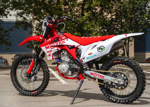 Мотоцикл MOTAX EX 300 позволит Вам испытать все грани удовольствия от экстремальной езды по бездорожью. Данная модель, предназначенная для гонок в стиле мотокросс и эндуро, является современным предложением от MOTAX и олицетворяет новейшие разработки инженерной мысли.Этот яркий, стильный и агрессивный мотоцикл с отличными эксплуатационными и ходовыми характеристиками найдет отклик в душе любителя скорости и драйва. В основе транспортного средства – надежная хромомолибденовая рама, готовая к высоким нагрузкам и резким маневрам. Она выдержит райдера весом до 150 кг.В основе ходовой части мотоцикла – классическая шестиступенчатая коробка передач (1-N-2-3-4-5-6), где N – нейтральная передача. Привод цепной. Качественная дисковая гидравлическая тормозная система гарантирует своевременное и четкое торможение.Колеса «обуты» в прочные покрышки с выраженным агрессивным рисунком протектора. Размер переднего колеса – 80/100-21", заднего – 100/90-18". У нас Вы можете купить Мотоцикл MOTAX EX 300 с бесплатной доставкой по РФ и гарантией до года. Также этот мотоцикл можно приобрести в рассрочку или в кредит.