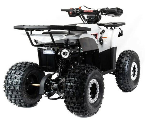 Квадроцикл Motoland 125 STORM cтильный, современный, универсальный квадроцикл подойдет вашему ребенку как мальчику, так и девочке. Его утилитарный дизайн разработан с учетом вкусов современного поколения и понравится всем без исключения.Квадроцикл не предназначен для дорог общественного пользования. Его 8 дюймовые колеса на хорошей внедорожной резине с легкостью преодолеют все преграды в виде грязи, песка, луж и кочек. А что еще нужно для веселых покатушек в выходные дни?У этого квадроцикла отличная управляемость в любых условиях эксплуатации, благодаря грамотной настройке подвески. Данный квадроцикл оснащен автоматической коробкой передач с реверсом, который установлен на усиленной раме, что дает уверенность в прочности конструкции.Ваш ребенок быстро овладеет навыками езды на данной технике и получит массу запоминающихся эмоций.Квадроцикл STORM оснащен двигателем 1P54FMI 125 см3, мощностью 8 л.с. c воздушным охлаждением, электрстартером, LCD (электронная) панелью приборов, светодиодной оптикой, стоп-сигналомДля безопасности имеется чека отключения двигателя, если ребенок отпускает руль, то мотоцикл практически сразу отключается при разрыве чеки.Максимальная скорость 60 км/ч. Объем топливного бака составляет 3,5 л