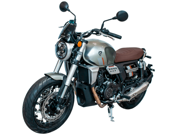 CYCLONE RE401 (SR400-B) 2024 – классик, в котором подчёркнутая простота объединяется с современными технологиями. Данная модель является более продвинутой версией модели RE3 (SR-400) – мотоцикл обладает более современным дизайном, снабжён стильными металлическими накладками на радиатор, а также топливным баком, объём которого увеличен до 20 литров.Двухцилиндровый четырёхтактный двигатель объёмом 401 см3 выдаёт 43 л.с. на 9500 об/мин. Инжекторный впрыск топлива с инжектором BOSCH увеличивает топливную экономичность, а также позволяет добиться высокой приёмистости и неприхотливости агрегата. Жидкостная система охлаждения не допустит перегрева двигателя даже при самом агрессивном вождении. На мотоцикл установлена 6-ступенчатая механическая коробка передач.Максимальная скорость мотоцикла составляет 150 км/ч.RE401 оснащён классическими спицованными колёсами диаметром 17 дюймов. Колёса обуты в бескамерные покрышки TIMSUN. С неровностями дороги эффективно справляются телескопическая вилка перевёрнутого типа спереди и маятник с двумя амортизаторами сзади. Ход передней подвески составляет 130 мм, задней – 81 мм. Оба компонента подвески являются регулируемыми. Эффективное и безопасное замедление с любых скоростей обеспечивают гидравлические дисковые тормоза с ABS спереди и сзади.Клиренс мотоцикла составляет 170 мм. Объём топливного бака – 20 л. Снаряжённая масса – 186 кг.Из дополнительного оборудования можно выделить USB-порт и датчики давления в шинах.Мотоцикл сочетает в себе отличные технические характеристики, комфорт и надёжность, что позволяет вам ощутить настоящую свободу на любой дороге.
