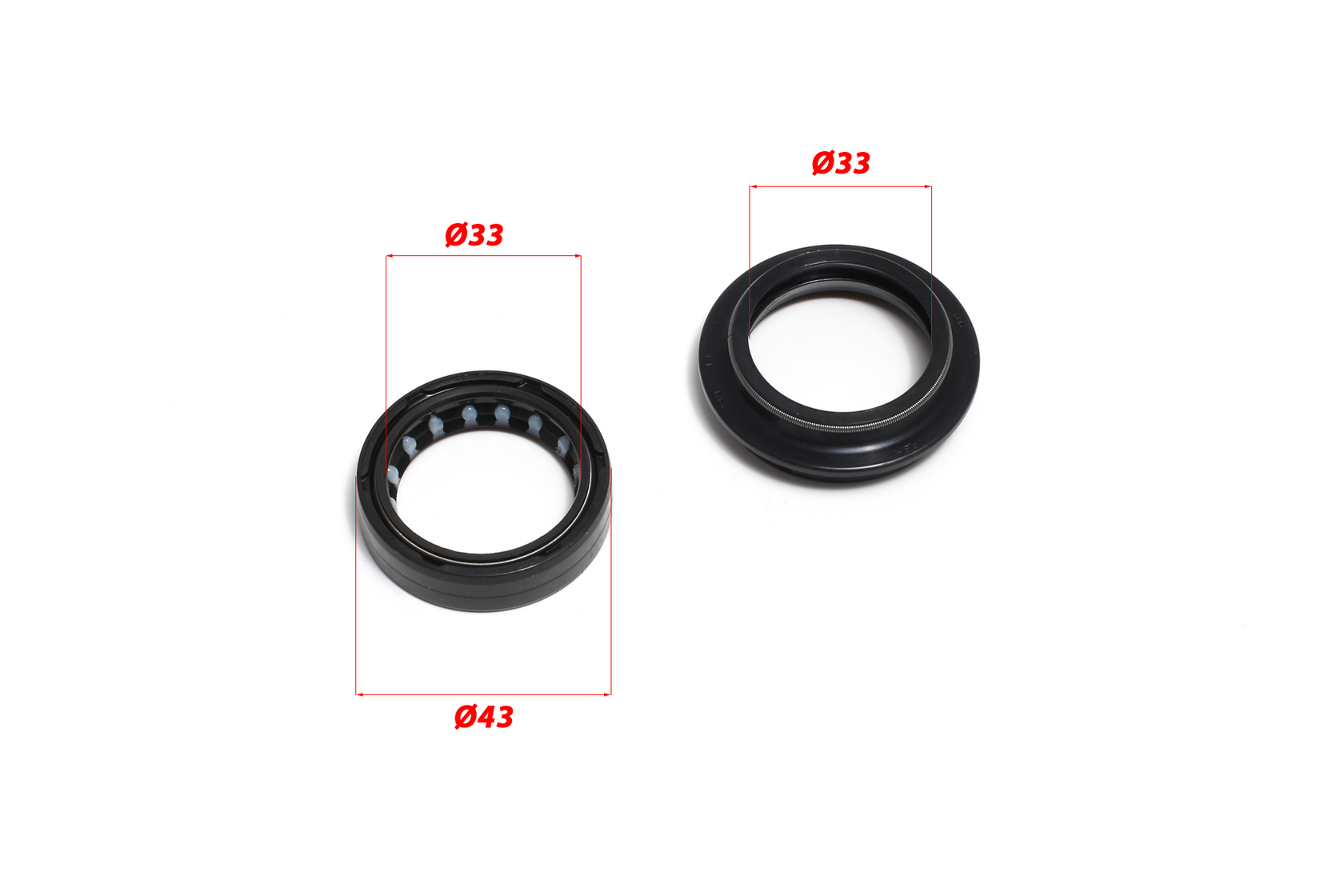 Главная ... Подвеска Сальники + пыльники пер. амортизатора 33x43x10.5 / 33x43x14 (Комплект на вилку)