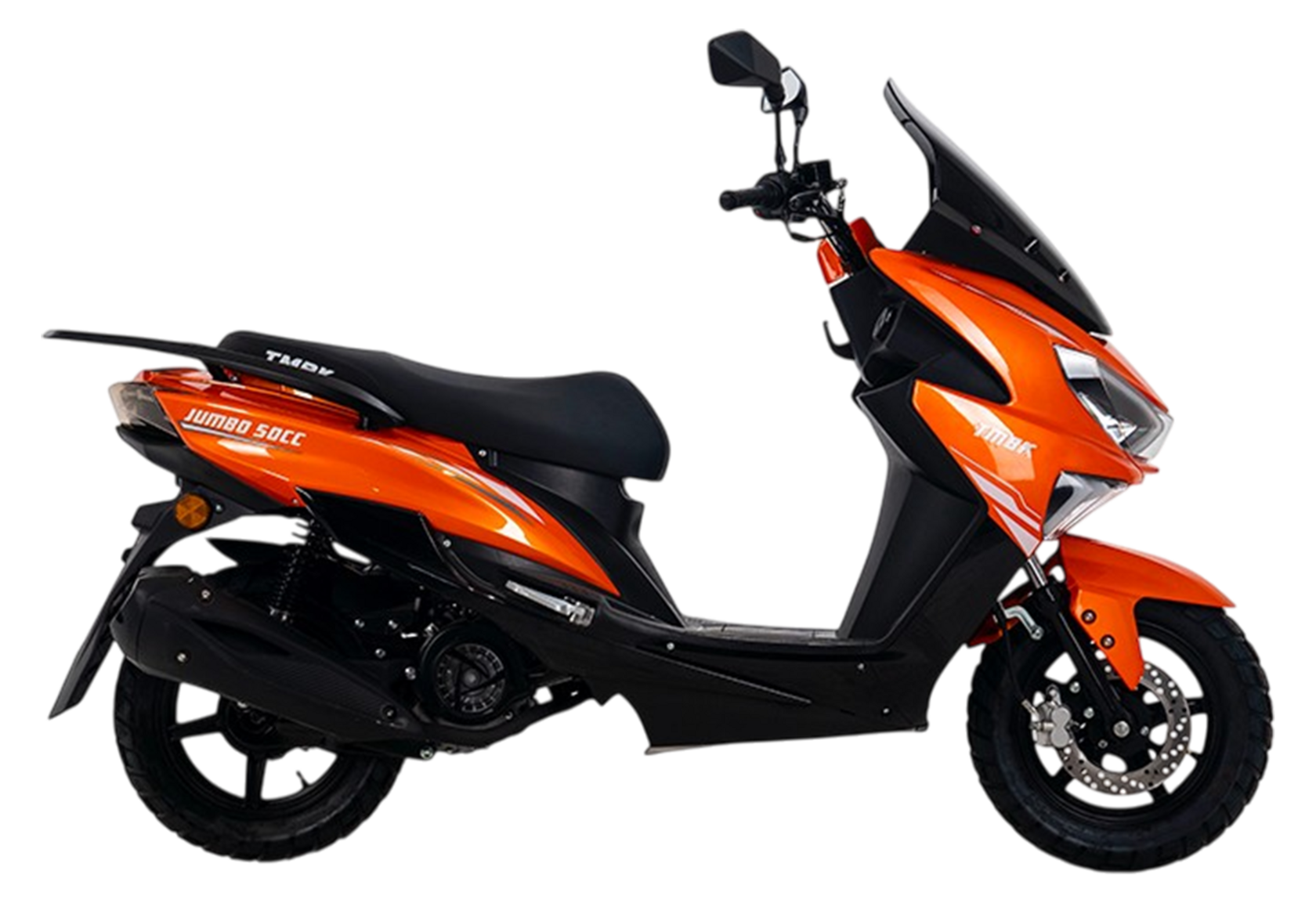 TMBK JUMBO — Ваш идеальный спутник для городаДля всех, кто ищет транспортное средство, сочетающее стиль, комфорт и практичность, мы представляем скутер TMBK JUMBO. Он станет вашим надёжным партнёром на городских дорогах, превращающая каждую поездку в настоящее удовольствие.Мощность и экономичностьСердцем TMBK JUMBO является современный 4-тактный двигатель, который дарит идеальный баланс между высокой производительностью и низким расходом топлива. Уверенное ускорение и плавный ход позволят легко справляться с любыми дорожными ситуациями, даже в условиях плотного городского трафика.Комфорт в каждой деталиЕго эргономичное сиденье с мягкой обивкой и высокое ветровое стекло обеспечат максимальный комфорт в любую погоду. Ваша спина и руки не устанут даже после долгих поездок, а защита от ветра и осадков сделает вождение приятным в любое время года.Практичность, которая вдохновляетБольше не нужно выбирать между комфортом и функциональностью. Вместительный багажный отсек легко вмещает шлем-интеграл и другие необходимые вещи, сохраняя их в полной безопасности. Площадка под кофр открывает возможности для перевозки дополнительного багажа. А дорожный просвет 160 мм позволяет уверенно преодолевать препятствия, не беспокоясь о повреждении корпуса.Современный стильTMBK JUMBO — это не просто скутер, а отражение вашего характера: элегантные линии, продуманный дизайн и яркая светодиодная оптика.Экологичность нового поколенияСкутер соответствует самым строгим экологическим стандартам, что делает его идеальным выбором для тех, кто заботится об окружающей среде.Ваш надежный партнер на дорогеTMBK JUMBO — это сочетание стиля, комфорта и надёжности. Он станет вашим верным спутником в любой ситуации, будь то поездка на работу, прогулка по городу или путешествие за пределы мегаполиса.