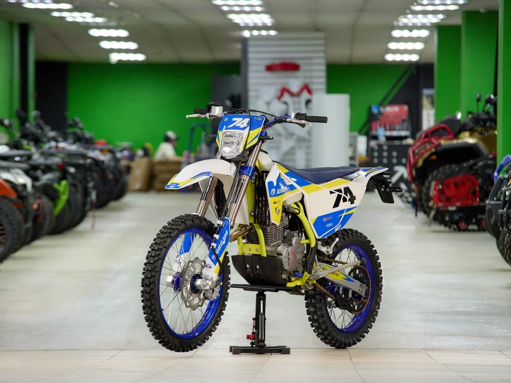 MotoLand TT 250 Новинка весны 2020 года. Теперь с ПТС.Надёжная техника из самых популярных компонентов оснащена Двигателем ZONGSHEN 172FMM с кикстартером и электростартером Мощностью 21 Л.С. на двигателе установлен Карбюратор NIBBI PE28.Это полноразмерный кроссовый мотоцикл его база по осям составляет 1430 мм., и габаритами 2180х800х1300 мм. Высота по седлу составляет 950 мм., что по сравнению с Моделью XT 250 ST 21/19 ниже порядка 20 мм. Что позволяет комфортно себя чувствовать райдерам среднего роста.За счет сбалансированной базы мотоцикл имеет отличную управляемость, а конструкция рамы и особенности настройки подвески GPX способствуют максимальному поглощению неровностей дорожного покрытия, а так же усиленная прогрессия на игольчатых подшипниках.Алюминиевые обода c антибуксаторами, усиленными спицами и ступицами CNC. На кроссовой резине Yuanxing 80/100-21 / 100/90-18На мотоцикле установлена обновлённая тормозная система аналог «brembo» с медными колодками , что обеспечивает отличные тормозные характеристики. Особенностью заднего тормоза является, лапка верхнего расположения с эксцентриковой регулировкой.Выпускной патрубок с резонатором Power Bomb имеет крепления на пружинах для снижения вибрации. Глушитель с уникальным дизайном прямоточного типа, полностью алюминиевый для облегчения веса.