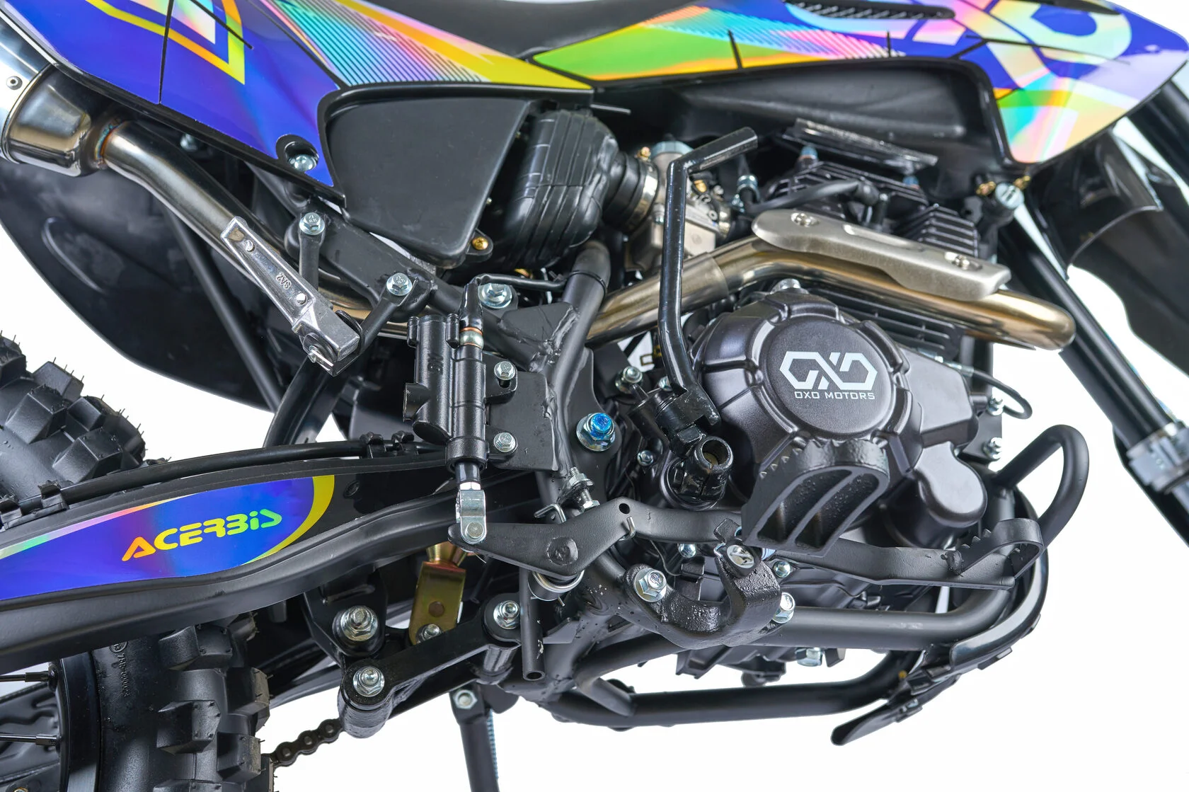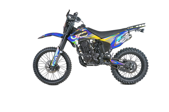 ДвигательДвигатель ZS175FMN 271 куб см с воздушным охлаждением выдаёт максимум мощности. Характеризуется хорошей тягой с самых низов и лёгким пуском с помощью электростартера. Повышенная износостойкость и качественные детали изделия позволяют применять к нему самые жёсткие требованияРамаРама мотоцикла OXO производится из труб шестигранного сечения хром-молибденовой стали, которая является очень прочной и легкой. Геометрия рамы, благодаря правильно выверенному центру тяжести и углу наклона вилки - способствует наилучшей управляемости устойчивости мотоцикла на низкой скорости.ПодвескаПередняя вилка перевернутого типа. Мотоцикл LITE 300 снабжен моноамортизатором, который соединен посредством системы рычагов прогрессии. Система прогрессии, обеспечивает равномерную, мягкую работу и увеличивает длину рабочего хода подвески.КолесаВ переднем и заднем колесах установлены антибуксаторы, которые притягивают покрышку к ободу, позволяя ездить по бездорожью при низком давлении в камерах, не давая покрышке проворачиваться во время езды.Размер передней покрышки: 80/100-21. Размер задней покрышки: 120/100-18. Они прекрасно себя ведут по песку и грязи, что позволяет райдеру отлично показать себя на пересеченной местности.Тормозная системаТормозная система мотоцикла - полностью гидравлическая с армированными шлангами. Спереди установлены двухпоршневой суппорт. Задняя тормозная система представлена в виде однопоршневого суппорта. Данная конфигурация тормозных механизмов, позволит быстро и безопасно остановиться с максимальной скорости даже на бездорожье.РульВажная часть современного эндуро мотоцикла - усиленный руль переменного сечения. Алюминиевая ручка газа с коротким ходом имеет регулировку троса. Также мотоцикл укомплектован электронной панелью приборов.