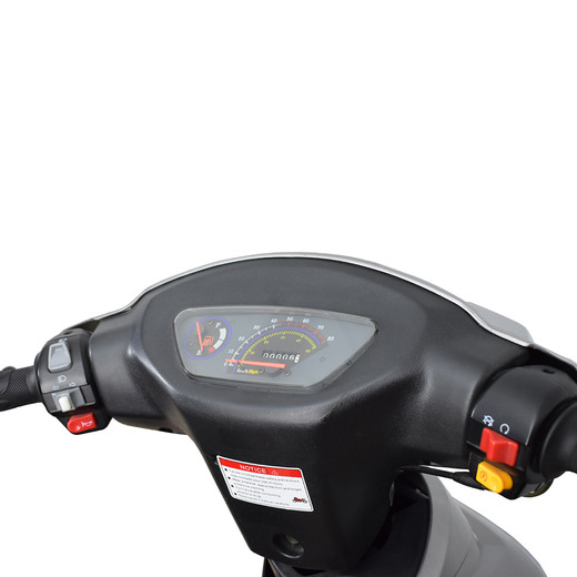 Еще одно неоспоримое преимущество – очень простой и надежный, как скала, 4-тактный двигатель объемом в 49см3. Мотор с воздушным охлаждением не отличается высокой мощностью, однако очень экономичен, нетребователен к обслуживанию и обладает достаточной производительностью. Скутер Regulmoto Digita 50 оснащается электростартером, так что двигатель можно запускать как при помощи удобной кнопки, так и традиционным кик-стартером. За безопасность эксплуатации отвечают дисковый тормоз на переднем колесе и традиционный «барабан» в ступице заднего колеса.
